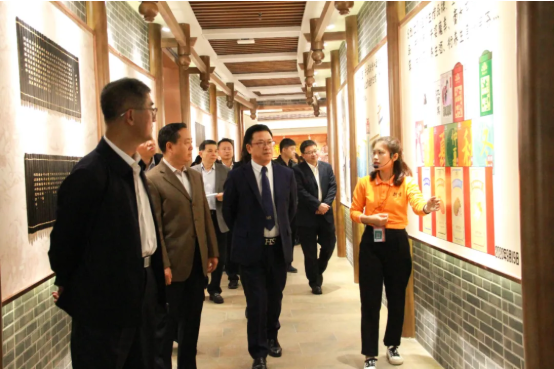 调研组在文旅部的引领下参观了养生健康馆、彭祖养生汤体验区、彭氏名人馆、广东南药馆、名贵药材馆、衍生馆,深入了解了衍生健康医药产业园的主营业务、产业布局、产品研发、发展理念等企业概况。